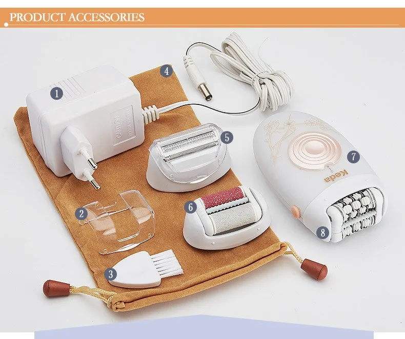 Các Đầu máy tháo lắp dễ dàng bao gồm đầu nhổ lông , đầu cạo râu, đầu chà gót chân