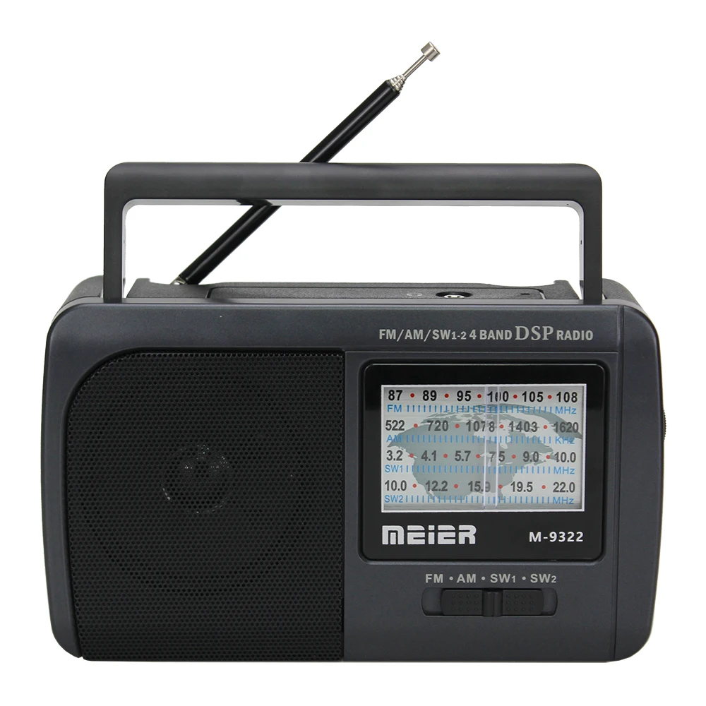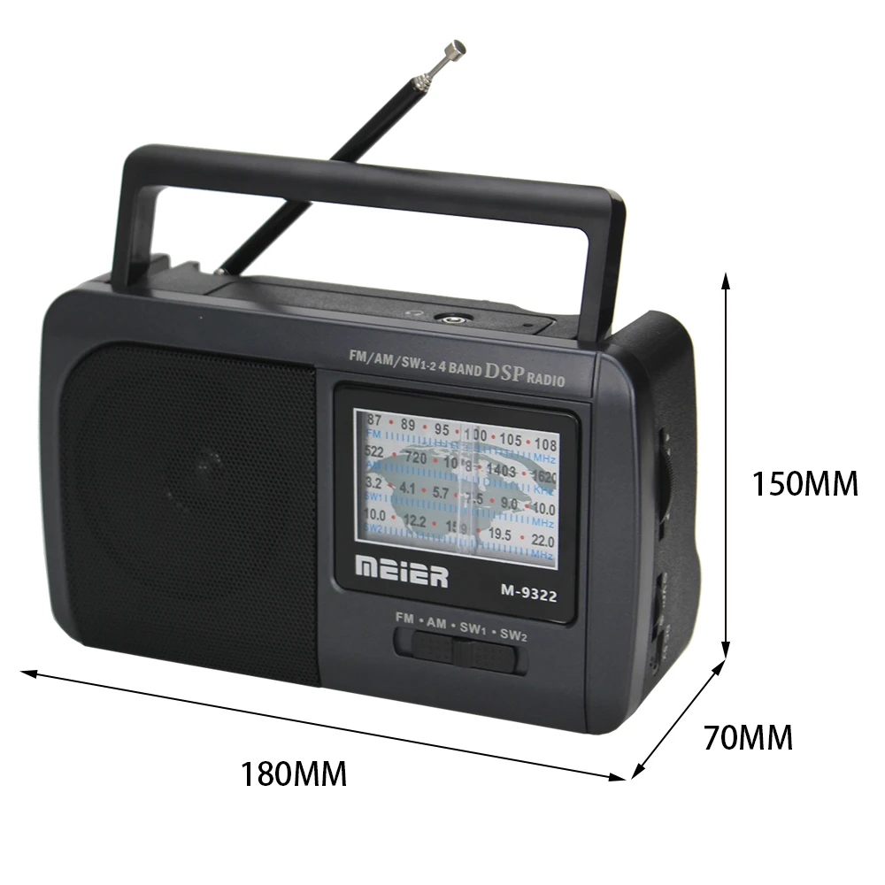 Radio MEIER M-9322 thu sóng mạnh FM/AM/SW1/sw2 , âm thanh to rõ, pin sạc lithium bền bỉ, cổng Type-C.